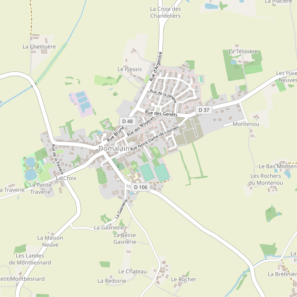 Recherchez des adresses, des routes, des moyens de transport, des services publics et commerciaux sur la carte interactive de Domalain.