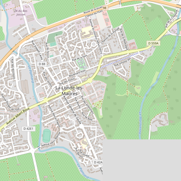 Recherchez des adresses, des routes, des moyens de transport, des services publics et commerciaux sur la carte interactive de La Londe-les-Maures.